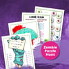 Do you want to set up a Zombie themed treasure hunt in ANY location? Grab a copy, it's great for Halloween parties or zombie fans and perfect to keep the family entertained; it just might be what you are looking for. You will be crowned the coolest grown-up EVER and earn extra brownie points in the process. The best part is that all the hard work has been done for you. This is a done-for-you puzzle treasure hunt that allows you to choose the puzzle to lead to ANY location.